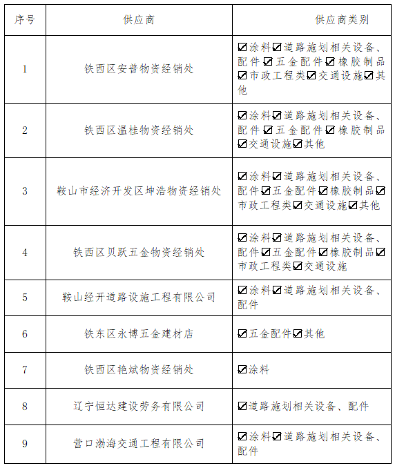 供應(yīng)商入庫(kù)名單公告